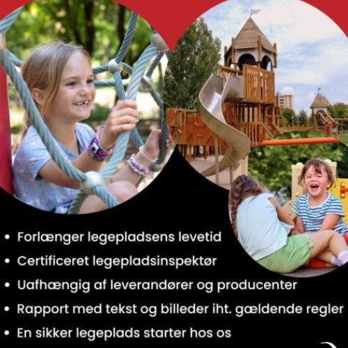 Vi hjælper både institutioner, boligforeninger, kommuner og private med at leve op til kravene til en sikker legeplads samt at få ro i maven.